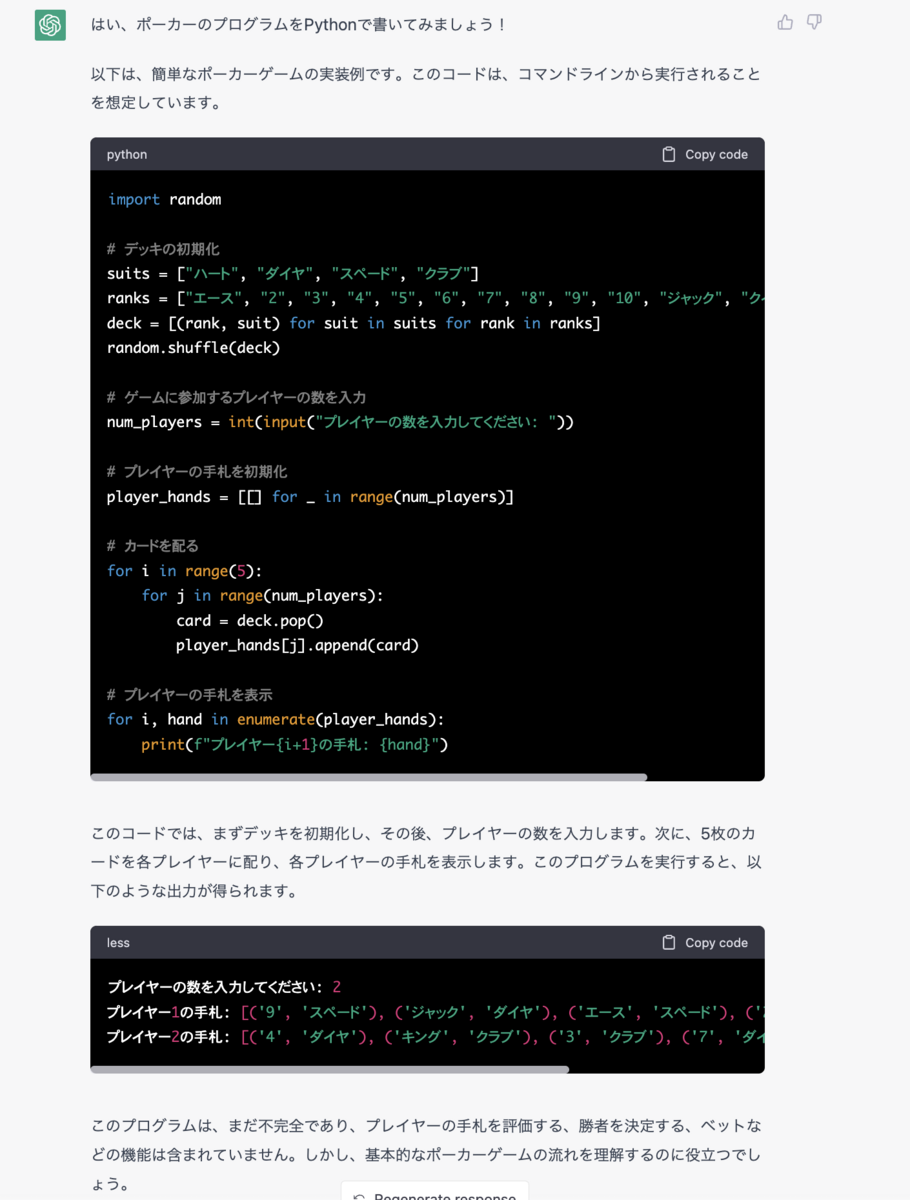次に、ChatGPTが出して来てくれたポーカープログラム